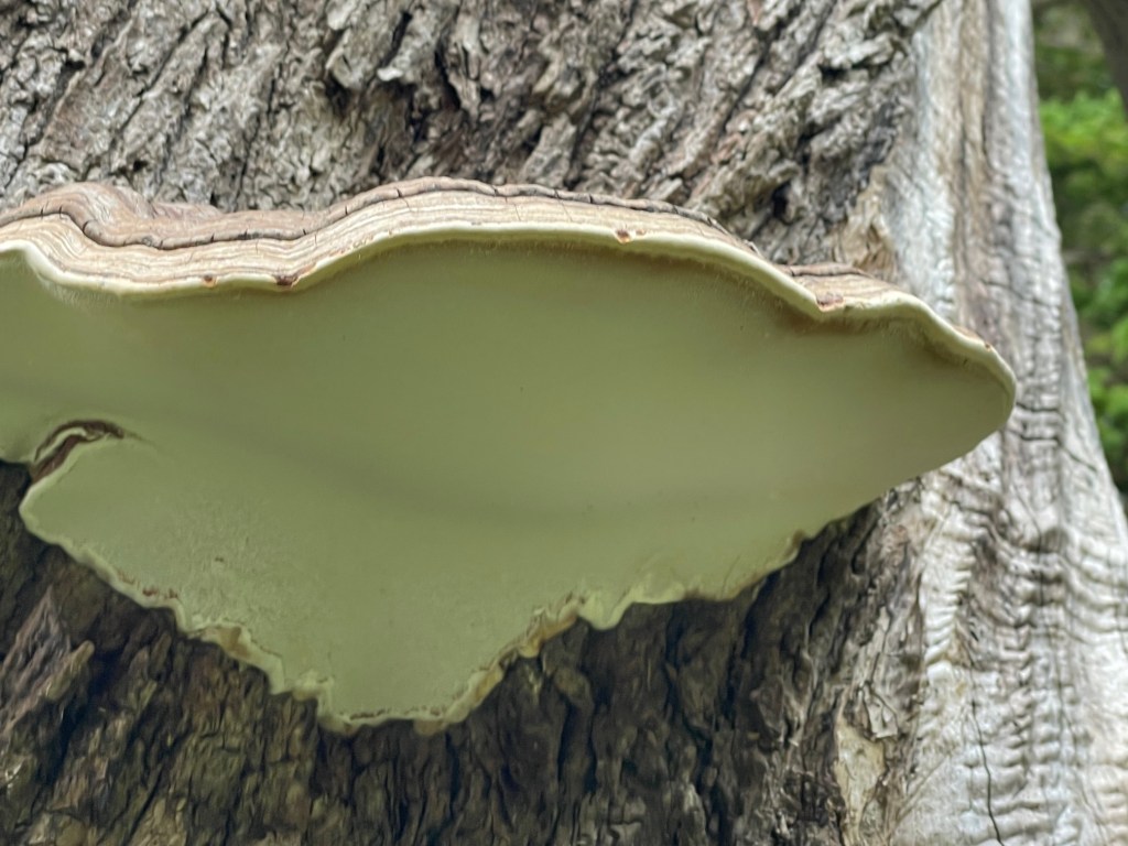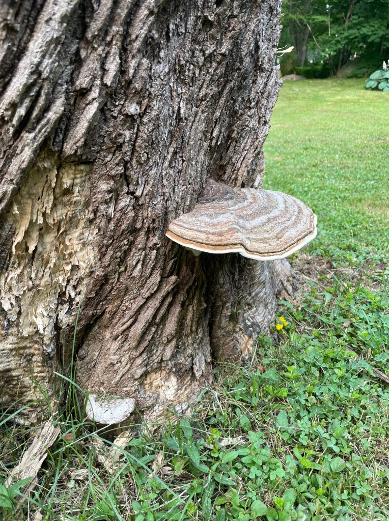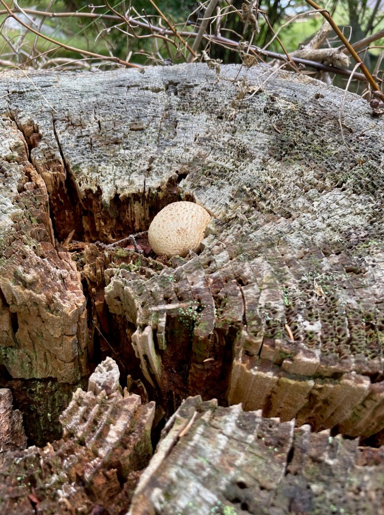 A stump produced a mushroom after a heavy rain as well. It seemed to look like what my white button mushrooms from the store look like when I forget about them in the back of fridge drawer—wrinkly and rough. It was alive and well though.