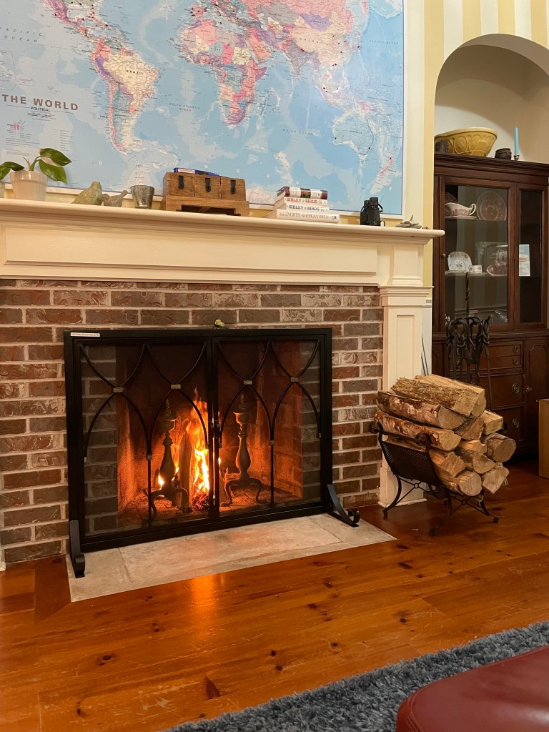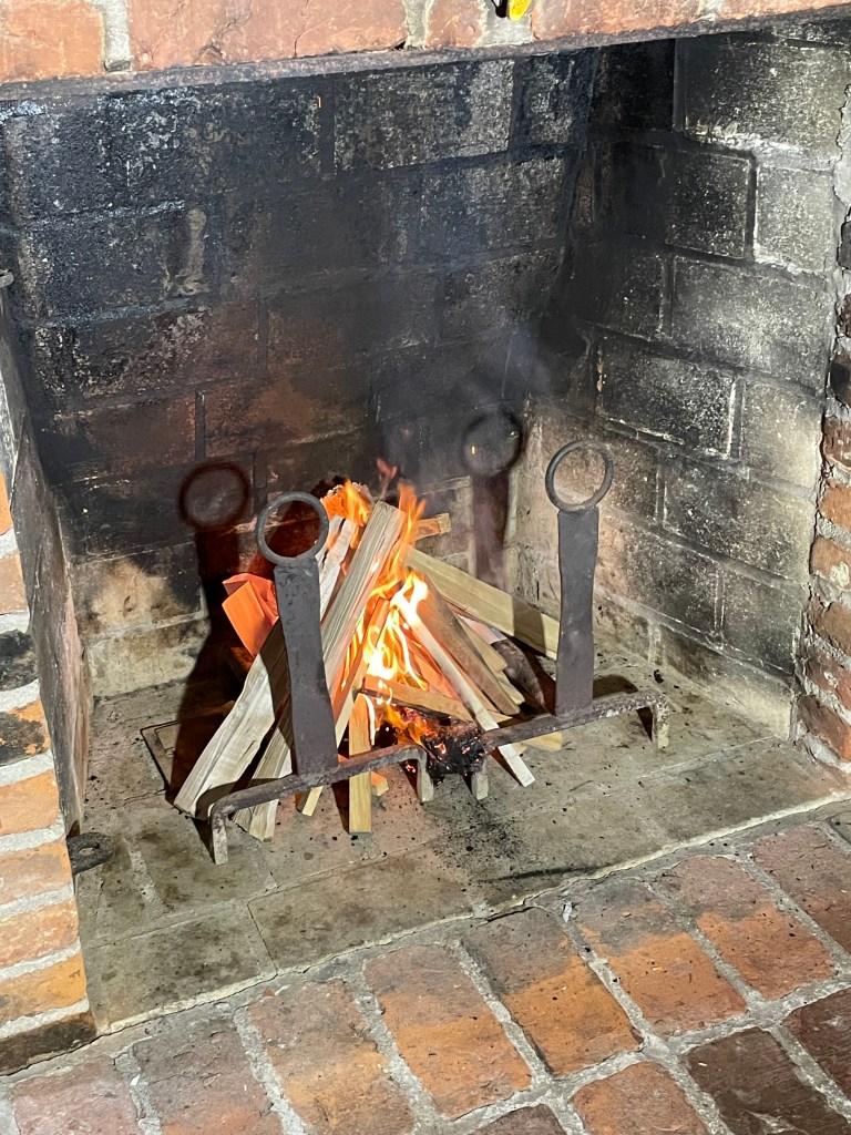 With dry kindling and firewood indoors, we were ready for nights of nostalgic and convenient heat. And then reality further set it. We needed to open the flue on the fireplace, which was easy enough with a wormgear operated flue, but it was a bit sticky, requiring some extra effort and diligence to ensure the flue was fully open. Then came the fun part. Let’s light the fire!