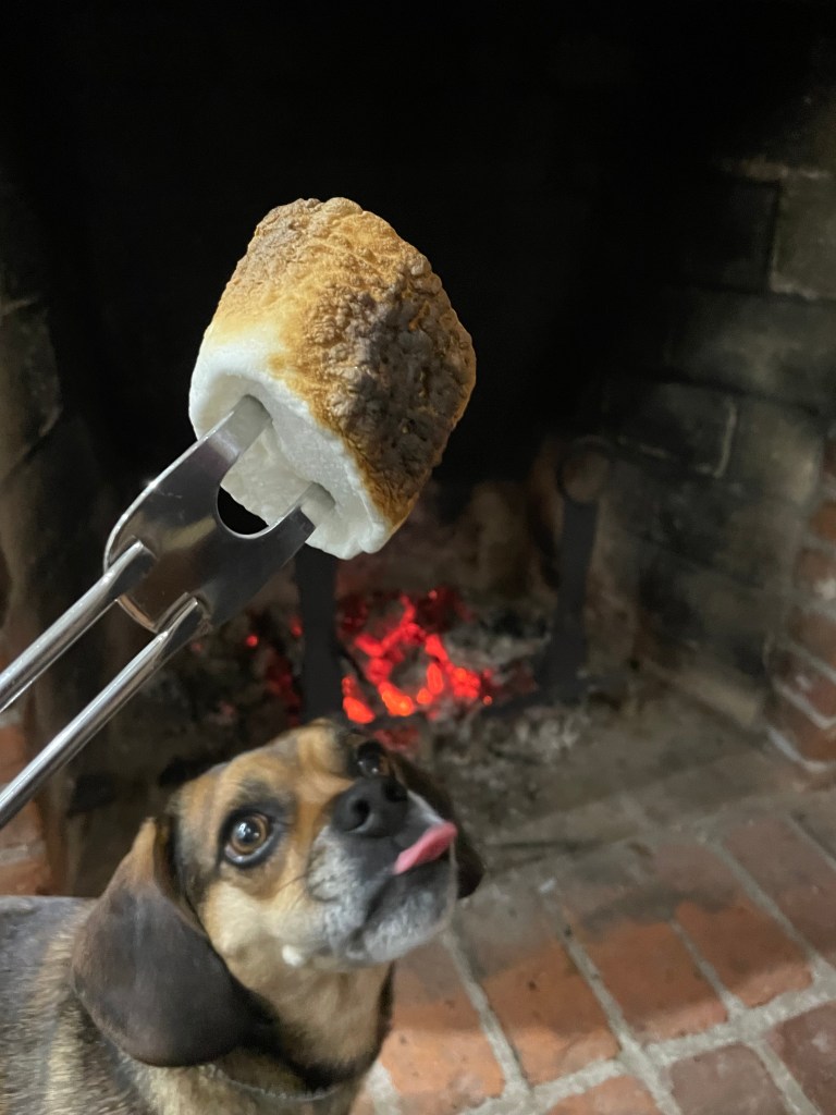 ↑ Persephone thought she might get a taste of that delicious marshmallow!