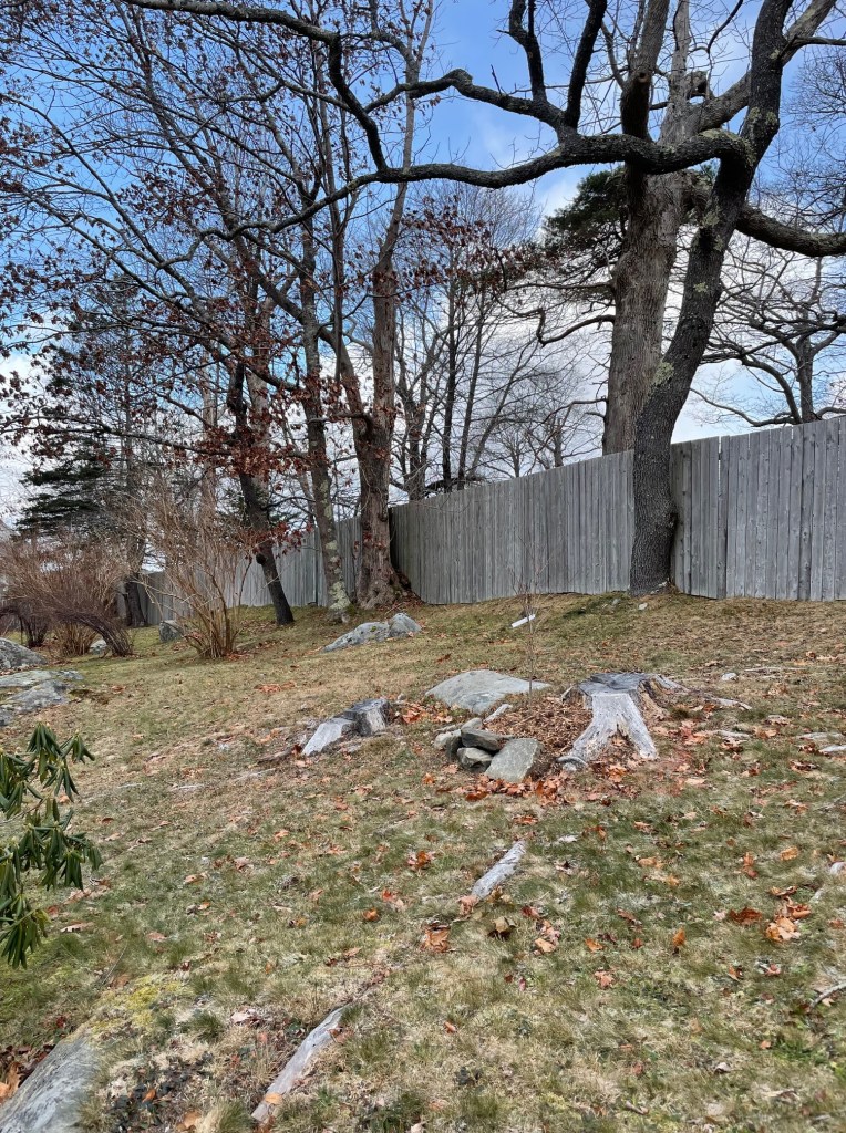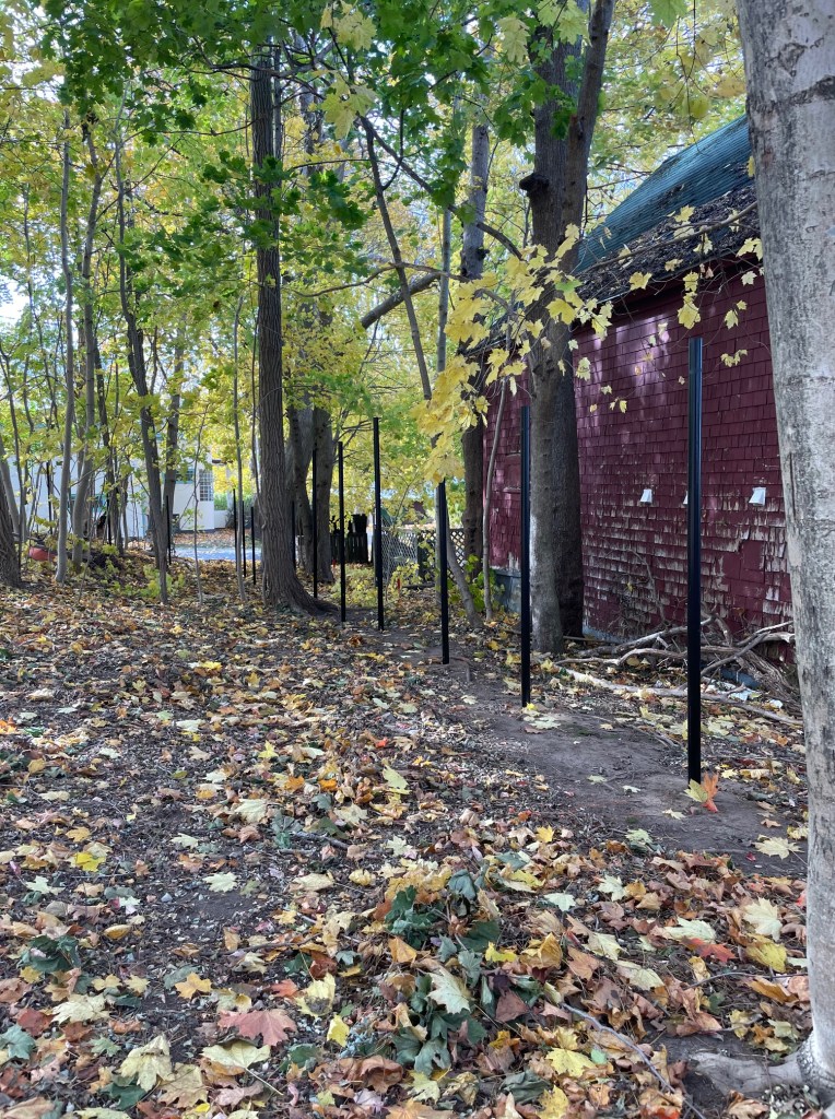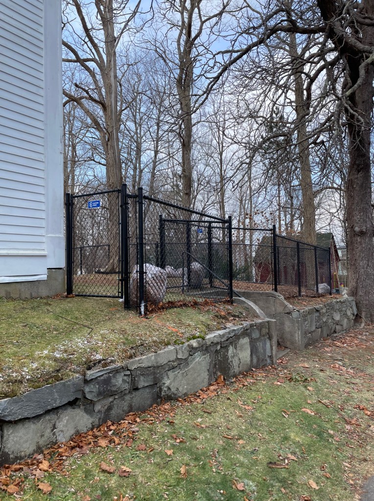 These photos show the beautiful existing fence which is wood and carefully contoured to the ground (gorgeous and pricey) and the new chain link additions. Denaige is hoping that this spring she can get some vines and landscaping done to make it less industrial looking. Long term, the decision to go with upgraded posts will give us flexibility to add a wood fence or even a stone wall with ornamental wrought iron in the future.